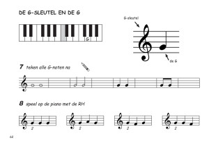 - eenvoudig noten lezen: van centrale c tot g’ met de rechterhand, van centrale c tot f met de linkerhand.